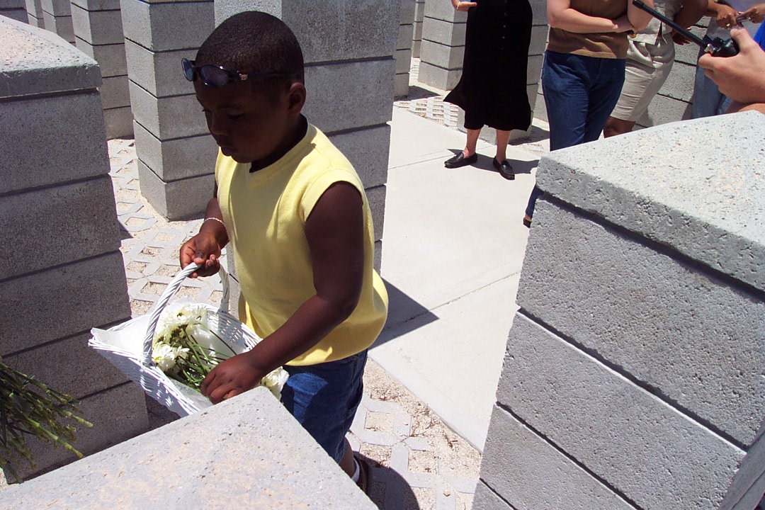 Robert, the boy in the following pictures, is 5 1/2 years old. He doesn't know his father, he was aboard the plane. This was the first trip Robert has taken to the memorial, perhaps one of many.