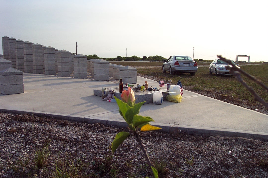 Here are some pictures from the Memorial, May 05, 2002. Just a bit of touchup and sweeping to get ready for the sixth anniversary of the tragic loss, May 11th. Participating in today's clean-up: Jeff Garnett KG4CNM, Matt Ginn KG4LGO, Jorge Arias KG4QLE, Alex Hernandez De Carvalho EB8CIC/W4, Ray Vaughan, KD4BBM. Photos by Jeff, KG4CNM. 07/15/03 |