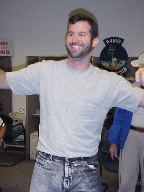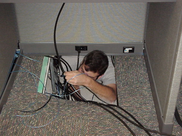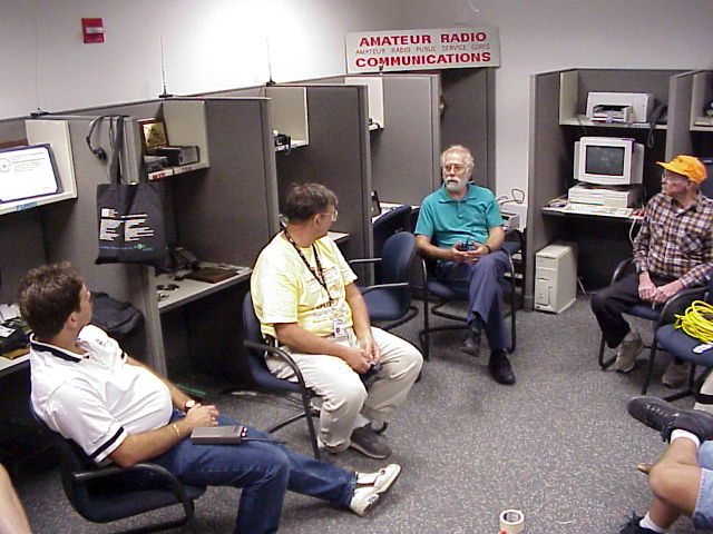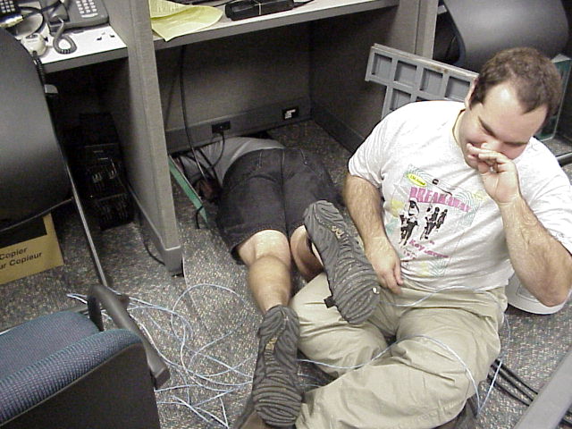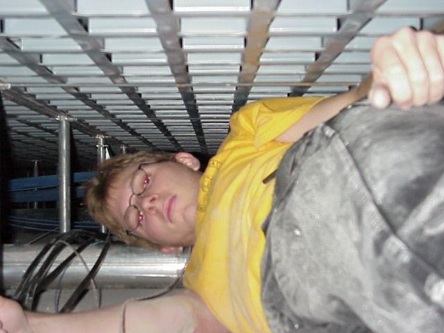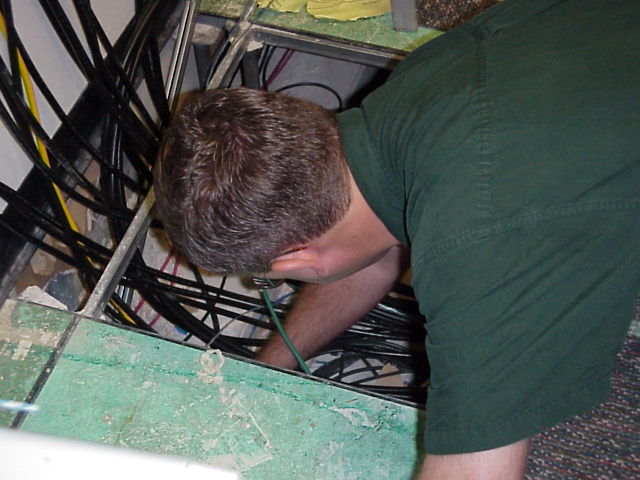 On November 4, 2000, a few of us got together to pull some coax into the new Radio Room at the new EOC. Some of the guys REALLY get into their work.