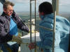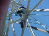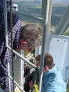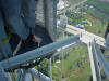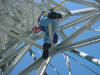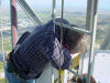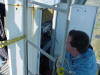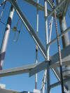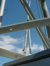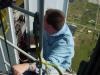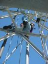 Work at 1400' on a very cold and windy day, Jan. 14, 2006. We removed the APRS Digi to update its programming and tested the repeater transmission lines for problems. This was our first tower trip after Wilma. The 442.350 TX antenna had a fault. All others passed testing. The 147.000 RX problem must be in the receiver. A new one needs to be built and installed. Video of the wind. John and George ground crew, Ray, John and Merritt on the tower. Click on any thumbnail to see if full size. Damage Control. Another tower user's antenna was flying in the wind and damaging one of the WTVJ transmission lines. We removed it to stop the damage. The 147.000 antennas were fine. Because of the top mounts on each antenna, they were one of the few that didn't get major damage during Wilma. Video of the broken part flying. APRS Digi Reprogramming. Yes, sometimes a car battery is a handy workbench supply After reprogramming and lunch, we went back up again to reinstall the digi. FIU's Radio Station Transmitter Room WTVJ Ch 6 RF Mixing and filtering FP&L Work The tower from a distance 01/16/2006 |
