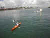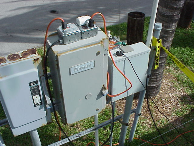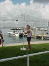 Pictures from the Cystic Fibrosis Foundation 2001 Kayak Race, now in Miami Beach. Pictures by Ray Vaughan, KD4BBM and Jason Foster, N3PRZ. RACES Officer, Carl, KA4HLO poses with the banner and a radio The new routes around Southern Miami Beach. There's a short route in gray and and a long one in blue. A great shot of a participant, the Port of Miami, and a view of downtown Miami Communication Command Post Left to right: Randy, WA2OMT runs the net. Matt, KG4LGO checks the unit positions on APRS. APRS station Robert, KE4MCL's APRS tracker package Our power source. I added a circuit breaker to the City park's panel. No generator needed for this event. Notice GFCIs for safety. Side view of the power center. At the top of the mast you can see a 2.4 GHz yagi. We had high speed connectivity to the Internet for messages, APRS, and weather radar. A local Wireless Internet company donated the bandwidth for the day. The Coast Guard vessel arrives at the dock. Tee Shirt strength testing session The event leader, David, KE4TIN. He operated his radio from a personal watercraft. The mister set up. Not ham radio, but it seems to be appreciated by the people who participate in an event on a hot day. You'll see these at some of the events we participate in when the crowds need some cooling. Ivan after being misted Father and Son team, Armando and Ivan on the dock. 07/15/03 |