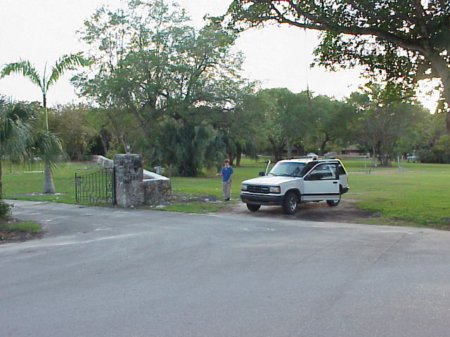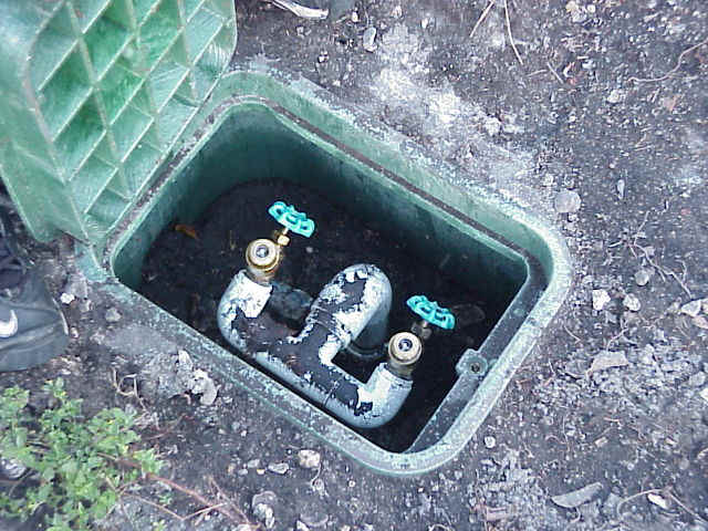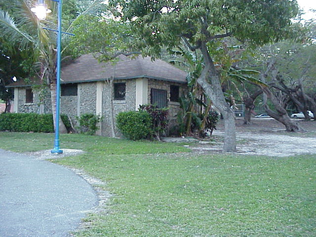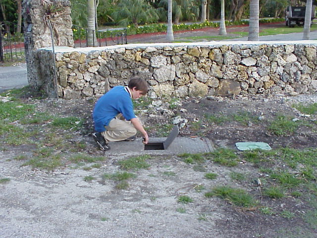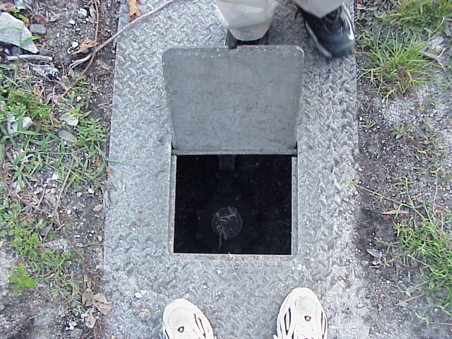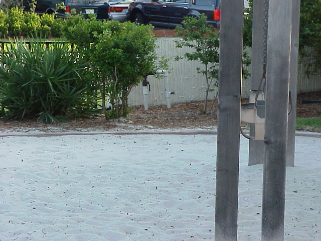 This is the instruction page for the mister crew. Instructions and photos here will explain how and where to set up the misters. Try to set up the misters so that the wind doesn't blow the water toward people who don't want it. In each case, the misters are to be OPTIONAL for the walkers. Leave at least half the width of the path un-misted. Here's where to connect the misters in Ingraham Park. This is the East end of the park. Look for these points near the gate to the private property. The park is on the right side of the coral wall. This shows the two places you'll need to open. Take gloves and a screwdriver to lift the lids. In the big metal cover you'll see the water meter. Look in here, toward the green cover. Look for this valve. This is the off position. Twist it 90 degrees to turn on the water. When the handle is perpendicular to the water flow, it's closed. If parallel, then it's open. This is the inside of the green box. Connect the hose to one of these, open the green valve, and you're all set. No bib key is needed. The other one could be used for drinkable water. This is city water, not a well, so it is drinkable. Let it flow to clear out the pipes before connecting to anything. Now for Sunrise Park. Look for this in the SW corner of the Park, near the swings. Connect about 150' of hose here. No bib key needed. Go East to the route and set up the mister. The hanging misting string could work between a trees and signs, or a self standing unit. Peacock Park. On the right side of this building you should find a hose connection. Connect there. Try to set up the misters on solid ground so we don't make mud puddles. No bib key needed.
