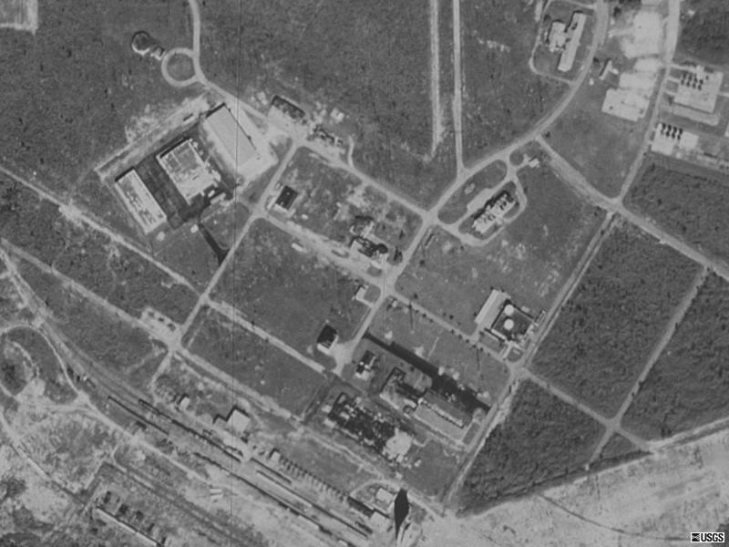 Here is a 1994 aerial photo of the blimp hanger It's the rectangle in the lower left quadrant of this image. Look for the shadow caused by the remaining tower.