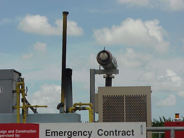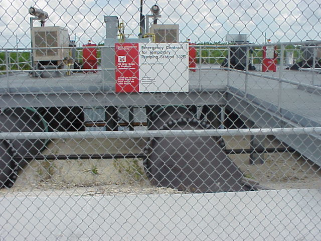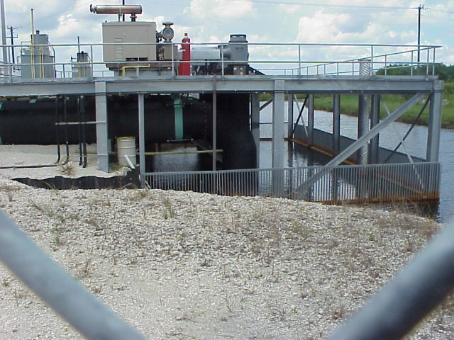 This is a pumping station in South Dade. It moves water from one area to another. The center pump is electric and runs all the time. The others are diesel. The pump into 5 huge pipes to an area to the West. The pumps move so much water, you could actually surf in the output flow. And that's just one of the 5 pumps running. This is too new to show up on the aerial photography. According to the track data I have, the output is at 25.54980 N, 80.56689 W. The pumps are located at 25.54978 N, 80.56068 W. Pump Video 1 Pump Video 2 Pump Video 3 08/31/2003 |