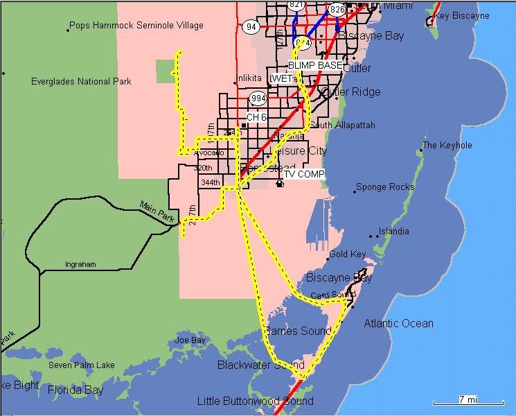 | On September 1, 2001, a group of 10 active hams toured some locations in South Dade. Part scouting trip, part hike, part educational, part history documentation. While it was a lot of fun, it also gives us information about locations around Miami-Dade where we might be called to help. I really need help explaining this stuff, so please try to describe the things we found and drop me an e-mail. I know the 'old timers' and my fellow natives know a lot of stuff about this area. Here's a map of our trip: We started at Dade Corners, US 41 and Krome, but the track starts while we were at the first new location, Chekika Park, then 'hole in the wall' to the north, then south we found a new pumping station. While some in the group tested their vehicle's water proofing, I documented a water level telemetry station. From there, lunch at a BBQ place near Krome and SW 248 St. We tried to get to the AreoJet facility, but found a road closed. Which of course increased our curiosity even more. There's some history down there! We found an interesting phone company installation along the way. A quick stop outside an old AT&T microwave tower and over the horizon long distance facility. Another brush with history at an abandoned military radar and maybe missile base. Some pictures, but not enough to document all of it. A stop for drinks at the Circle K in Key Largo, then up the 18 mile stretch to the C111 Canal. Sally explained it's history and plans to fill it to restore the Everglades. After this, we drove north to Florida City where we split up and headed home. We were on this tour of South Dade from after the ARPSC Meeting at about noon until about 6:30 PM. Quite a day.
