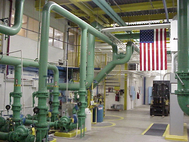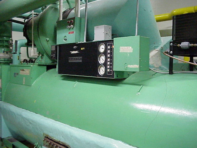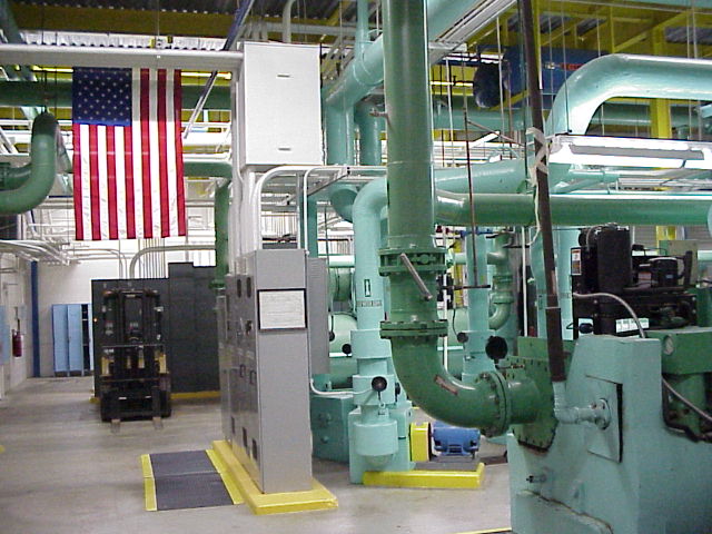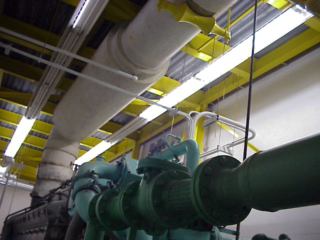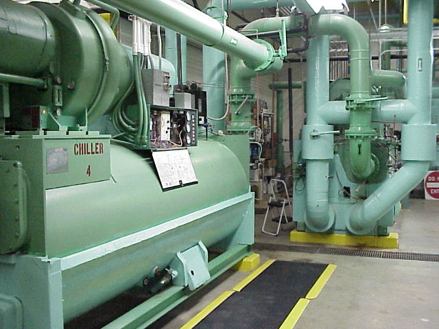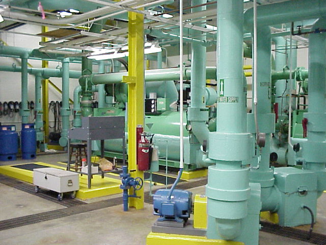 Chiller Plant. This is where cold water is made to run the air conditioning in the building. There are four large chiller. Any of of them can cool the whole building.