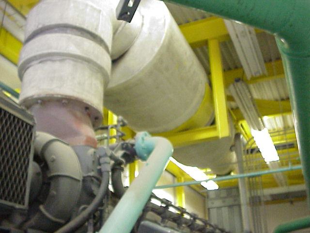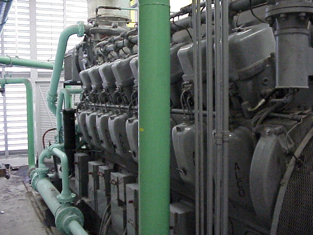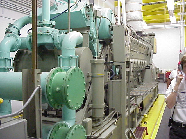 Two side views of the engine. This is the same size diesel generator that could be a large ship or a locomotive. Since it was running while we were getting the tour, ear protection was required.