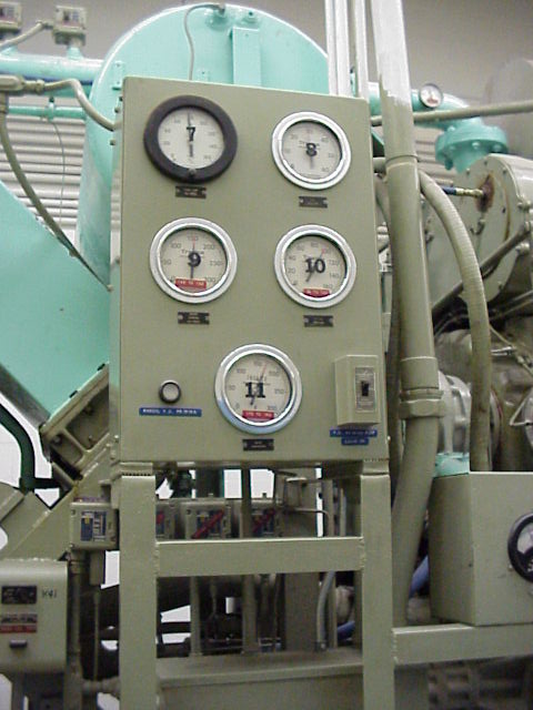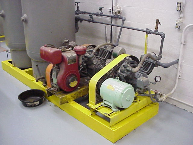 These are the air compressors that pressurize the tanks on the left. These are used to start the generator. Batteries, I think for the air compressor starters.